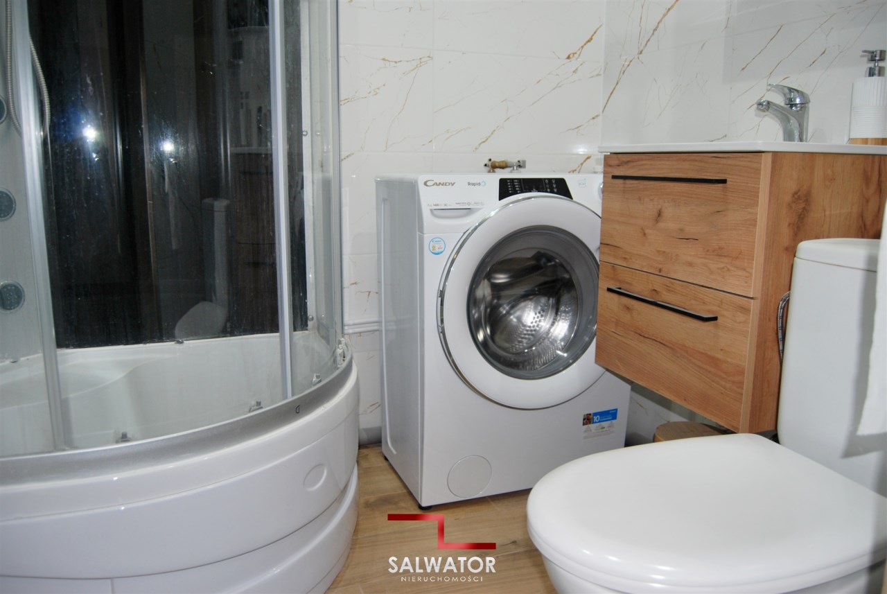 kabina prysznicowa, lustro, natrysk, pralka, prysznic, umywalka, WC